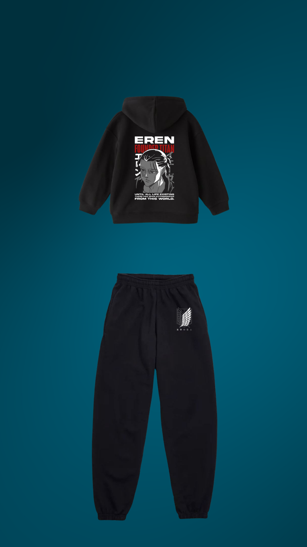 Anime-inspired Eren Yeager ensemble blending bold design with modern streetwear style