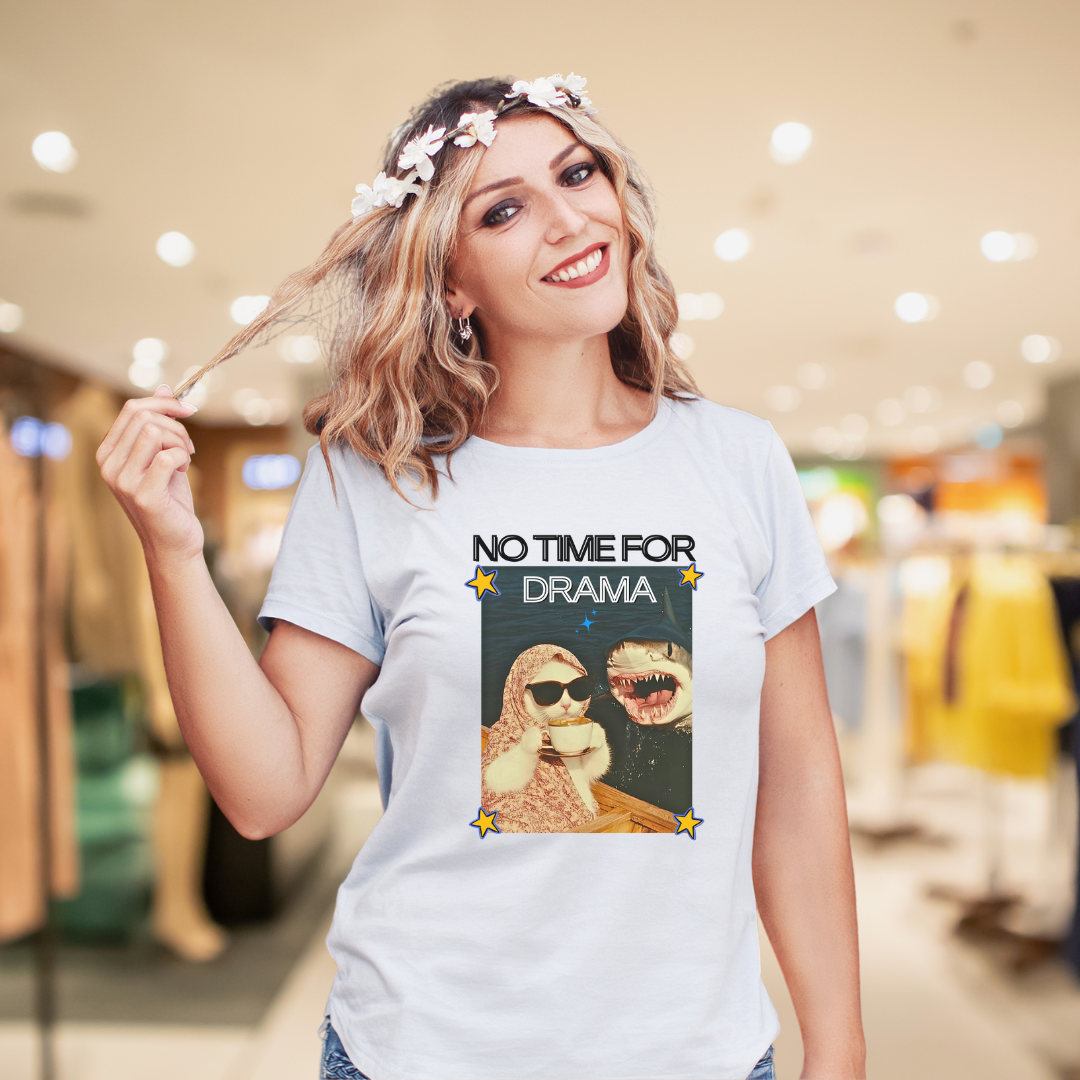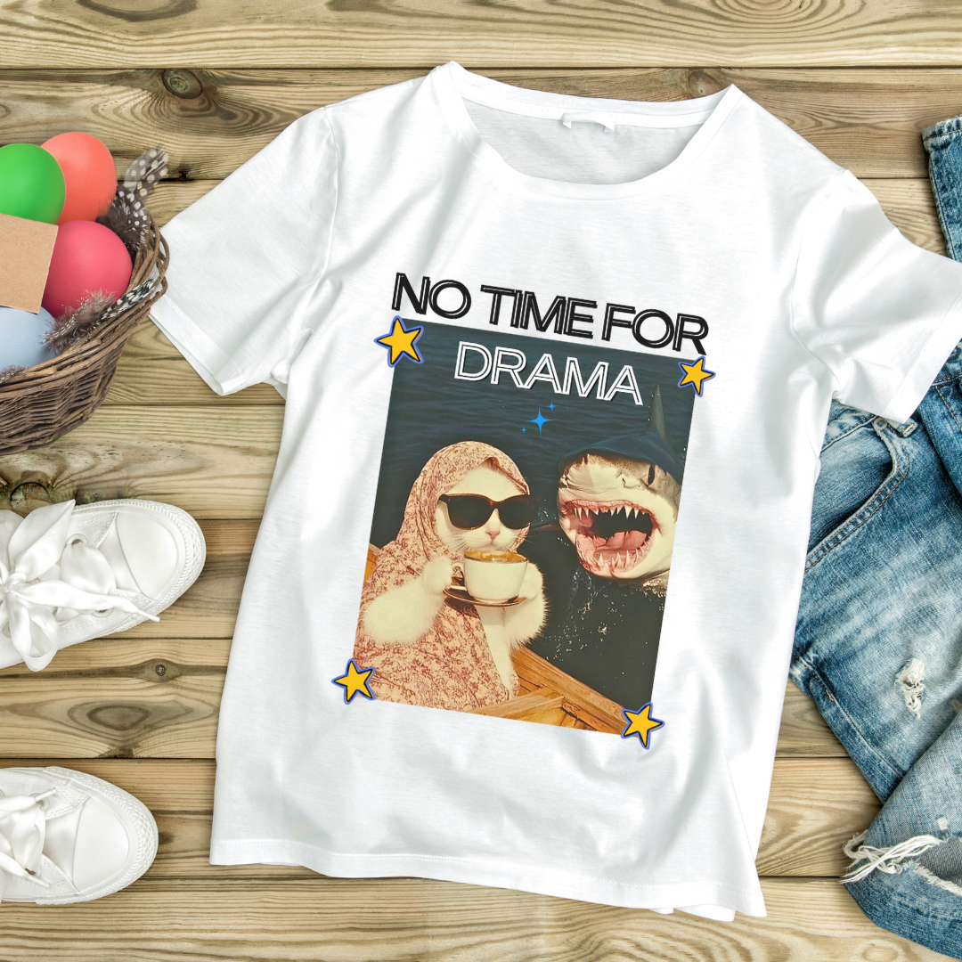 ✅ التفاصيل: ميمز طريفة + شعار “NO TIME FOR DRAMA”