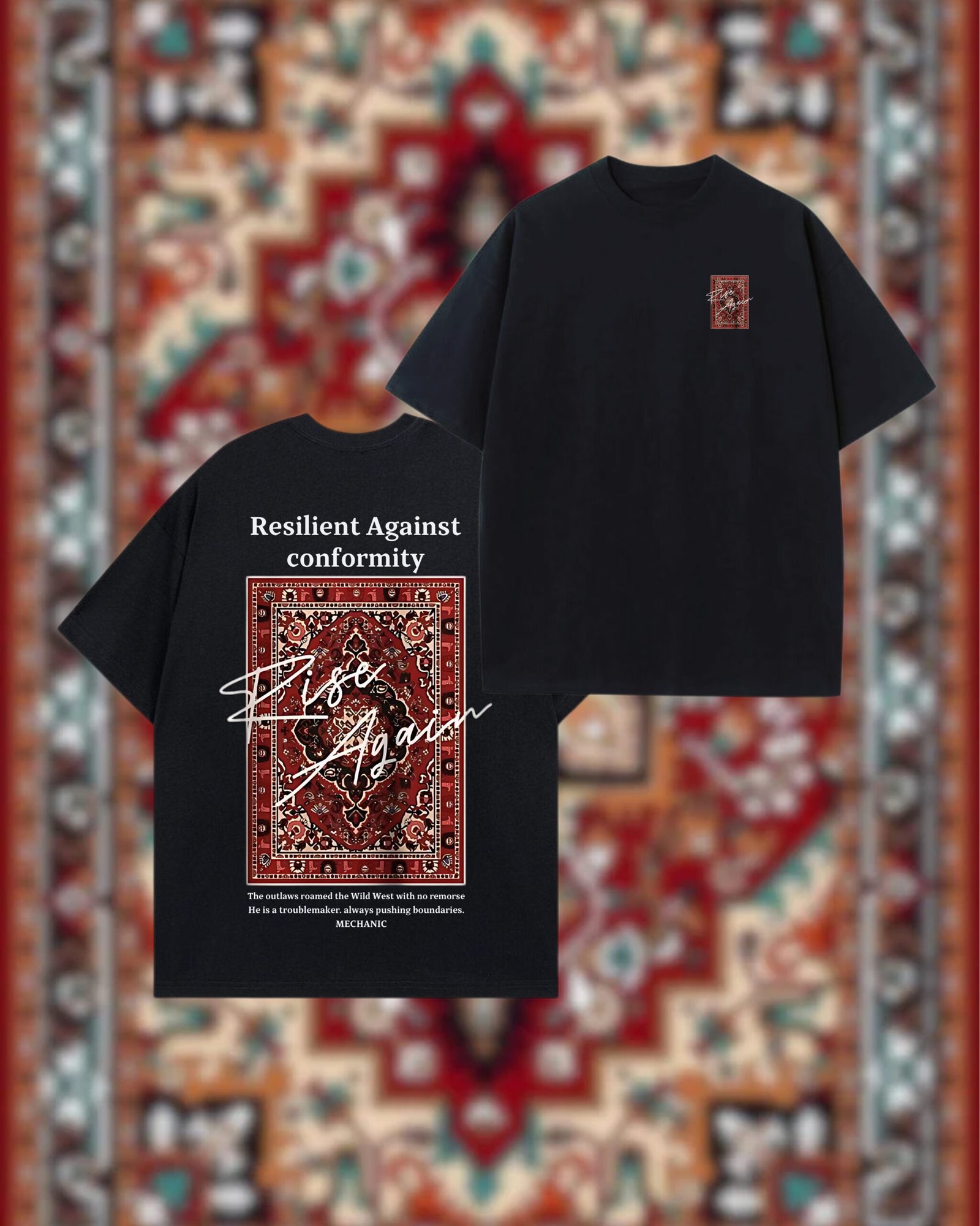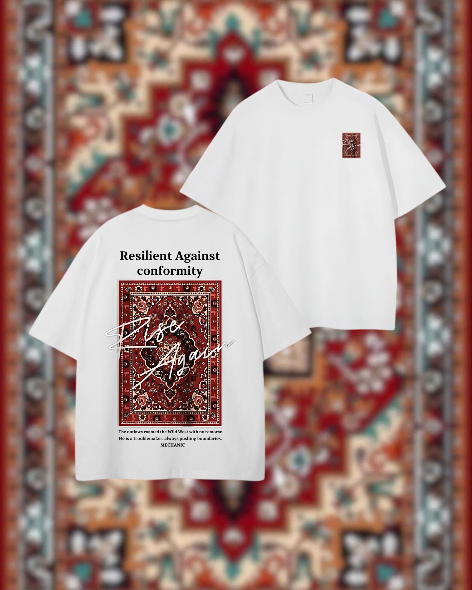 قميص “Rise Again” هو تذكير يومي بأن الفشل ما يعنيش النهاية، وأنك دايمًا تقدر تبدأ من جديد.