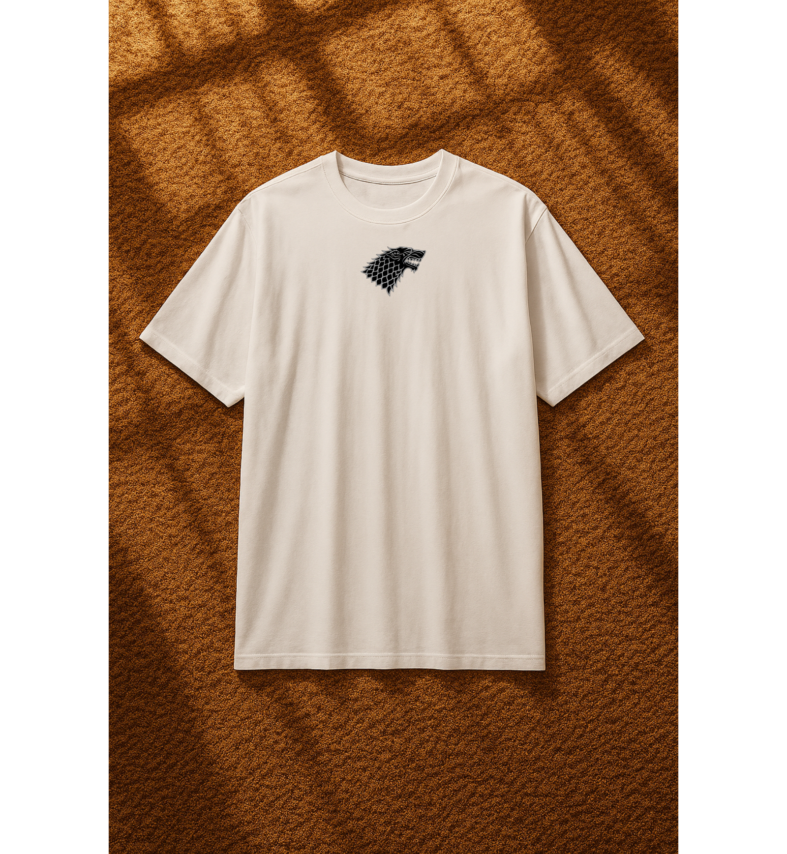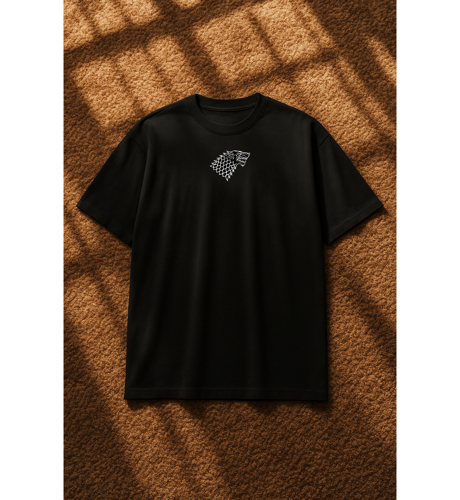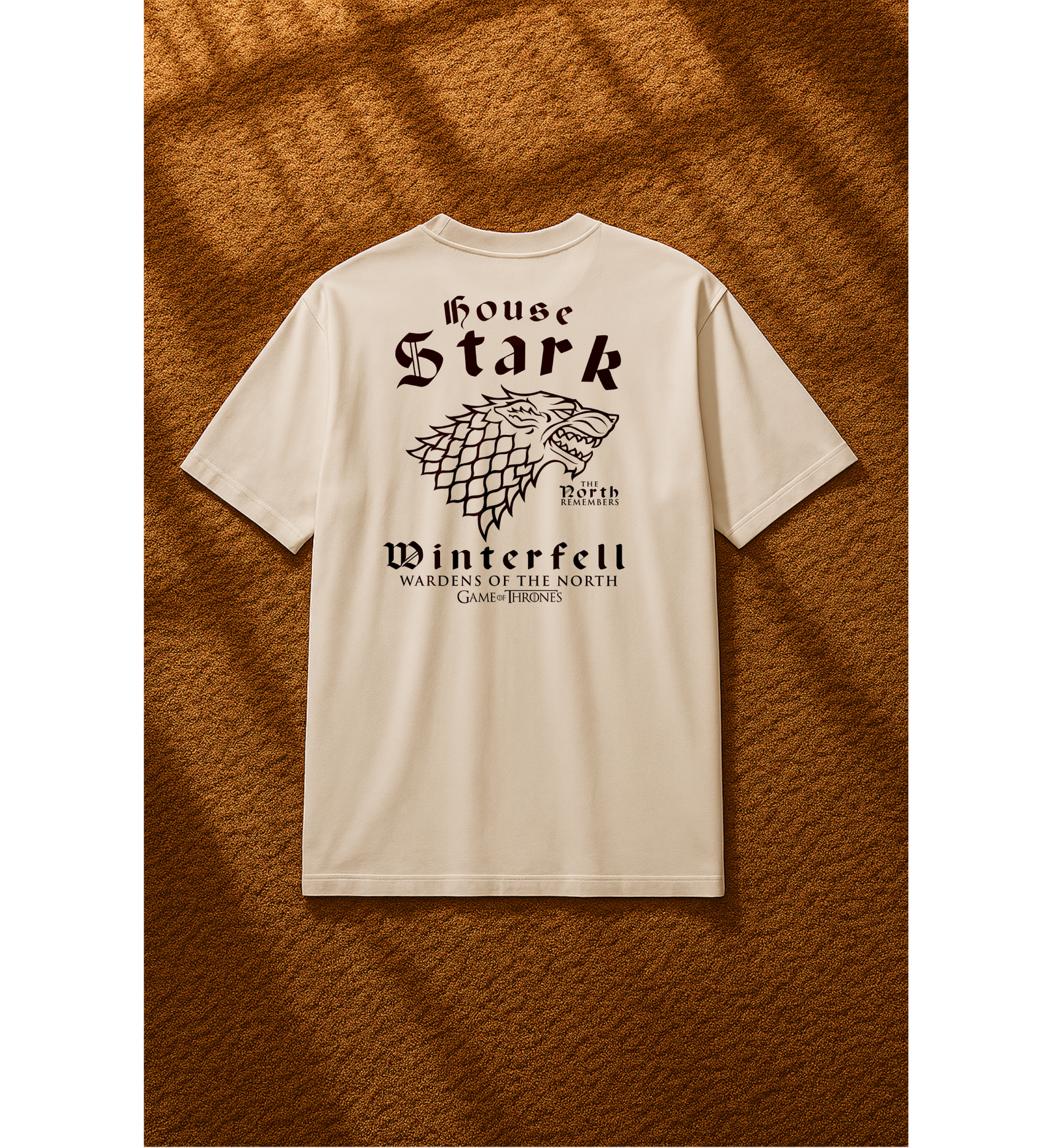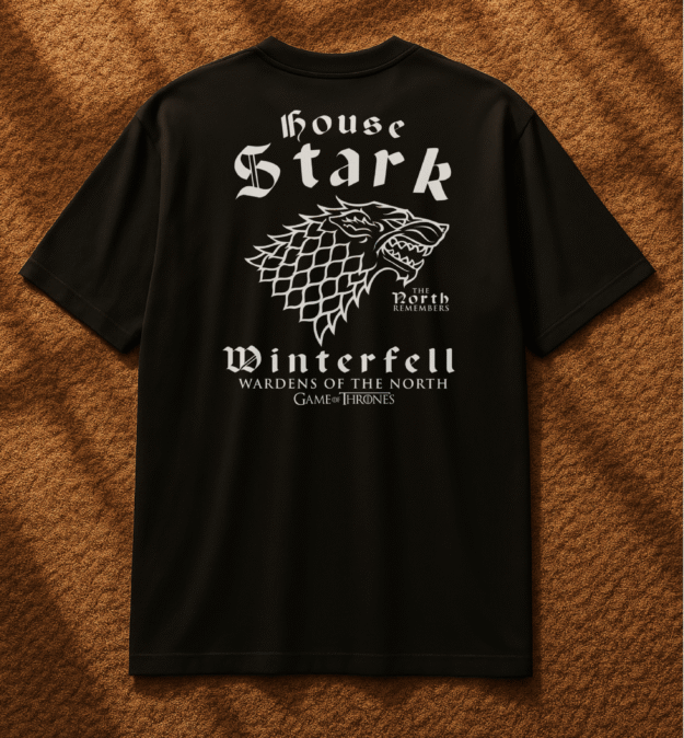 👕 تصميم مستوحى من عائلة Stark الشهيرة في مسلسل Game of Thrones، مع شعار الذئب الرهيب (Direwolf) الأيقوني.
