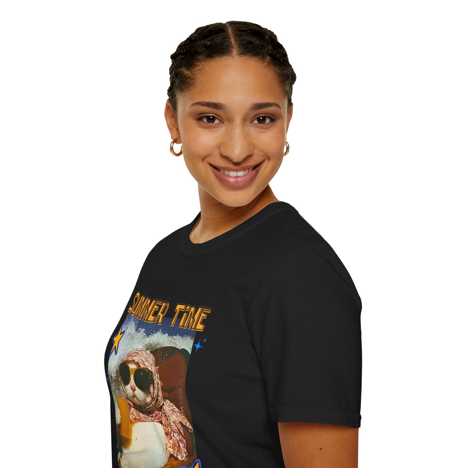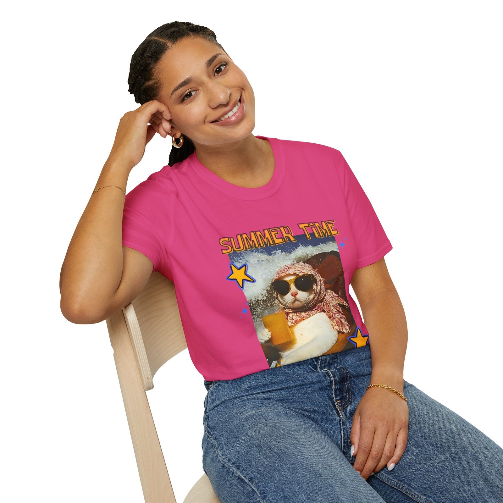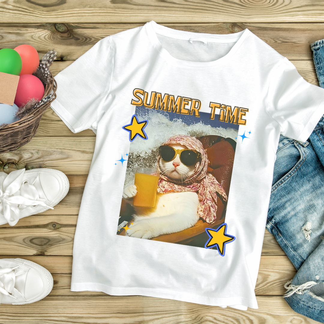 تمتعي بالأناقة والراحة مع هذا التيشيرت البناتي العصري، المصنوع من 100% قطن ناعم لملمس مريح طوال اليوم. يتميز بطباعة مميزة تحتوي على ميمز عفوية وكتابة “Summer Time”، ليعبر عن شخصيتك المرحة وحبك للحياة بعيدًا عن الدراما والسلبية.