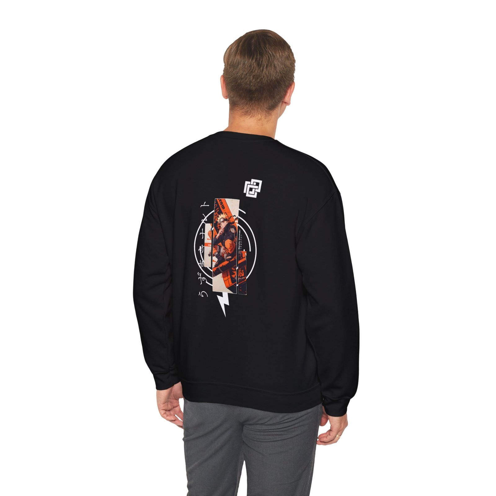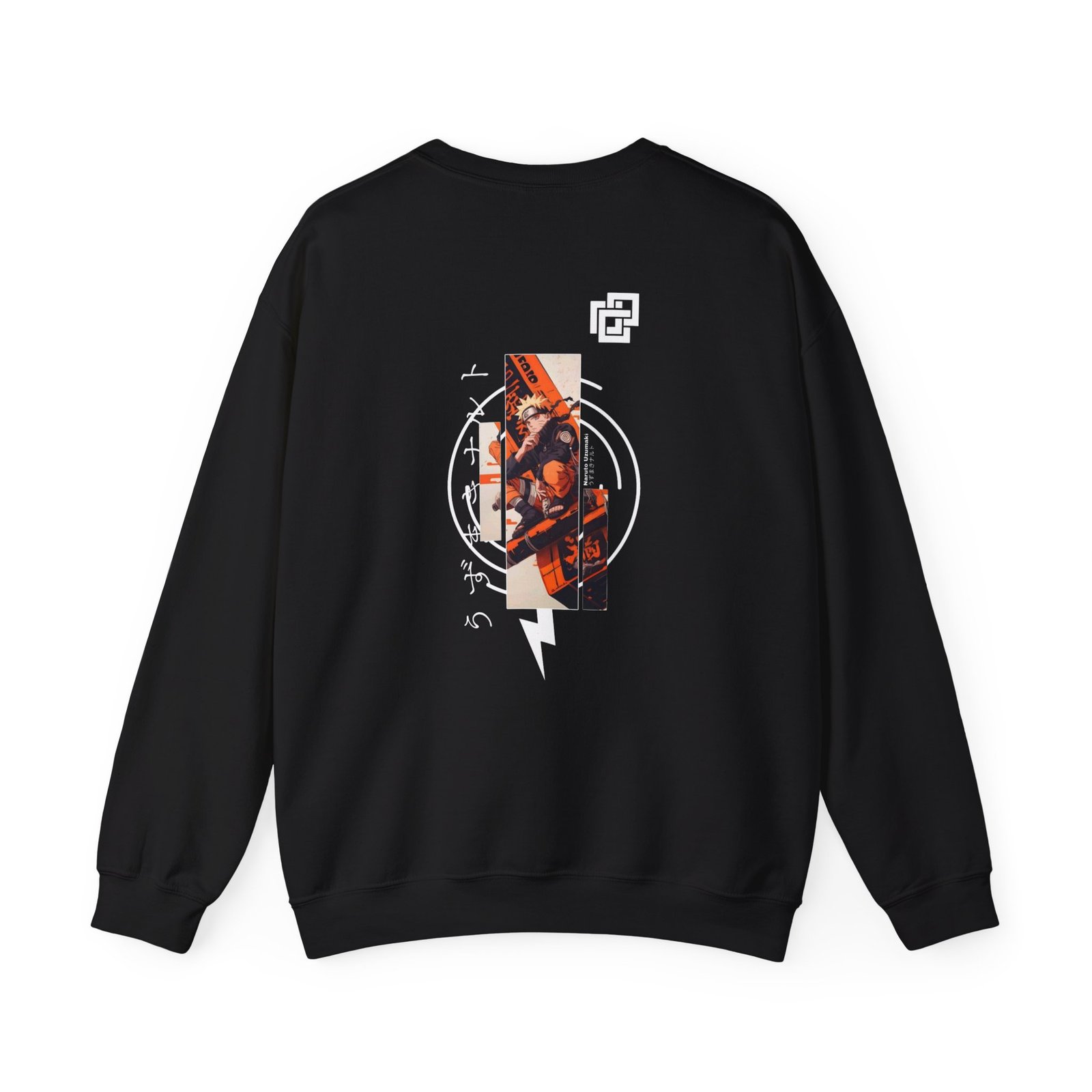Ce sweat-shirt noir premium allie confort absolu et design artistique. Il présente une composition visuelle unique en “triptyque” mettant en scène Naruto Uzumaki, sublimée par des éléments calligraphiques japonais et des motifs géométriques modernes.